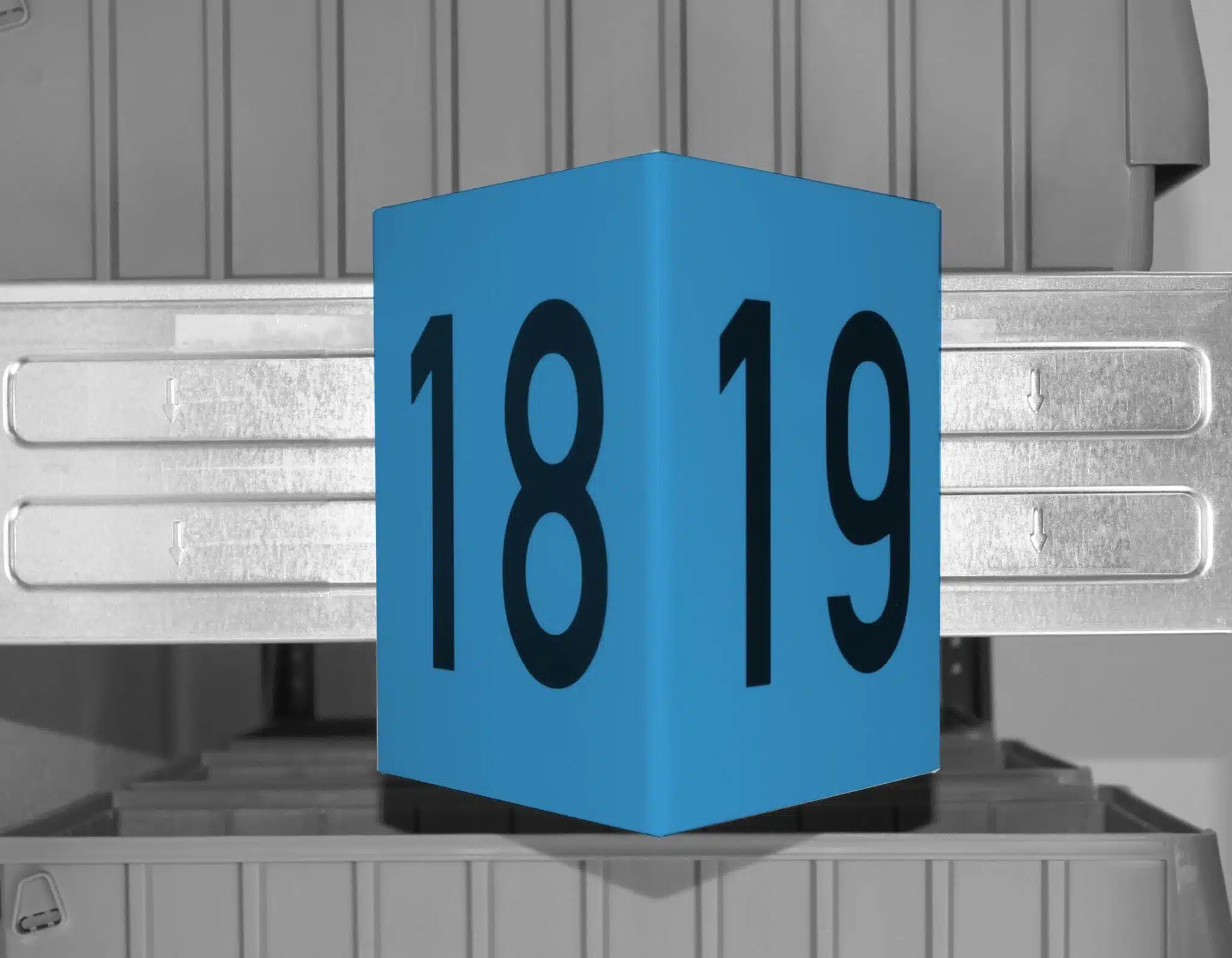 Wozu das Ganze? Naja, Regalzeilen- bzw. Gangschilder für Paletten- und Fachbodenregale sind in der Regel plan an der Stirnseite des Regals befestigt. Der Kommissionierer sieht die jeweilige Kennzeichnung nur bei direkter Draufsicht. Außer er hat einen Knick in der Optik – oder aber das Schild. Mit Hilfe einer speziellen Thermoplastmaschine erhitzen wir das Trägermaterial aus Hartschaum und verformen es. So erhalten Gangschilder jeden gewünschten Winkel zwischen 1 und 179 Grad in der Längsachse. Damit können die Schilder von Kommissionierern aus verschiedenen Richtungen kommend gelesen werden. Befestigt werden die Schilder weiterhin an der Stirnseite des Regals. Dafür werden sie mit zwei zusätzlichen Falzungen an den beiden Längskanten ausgestattet.