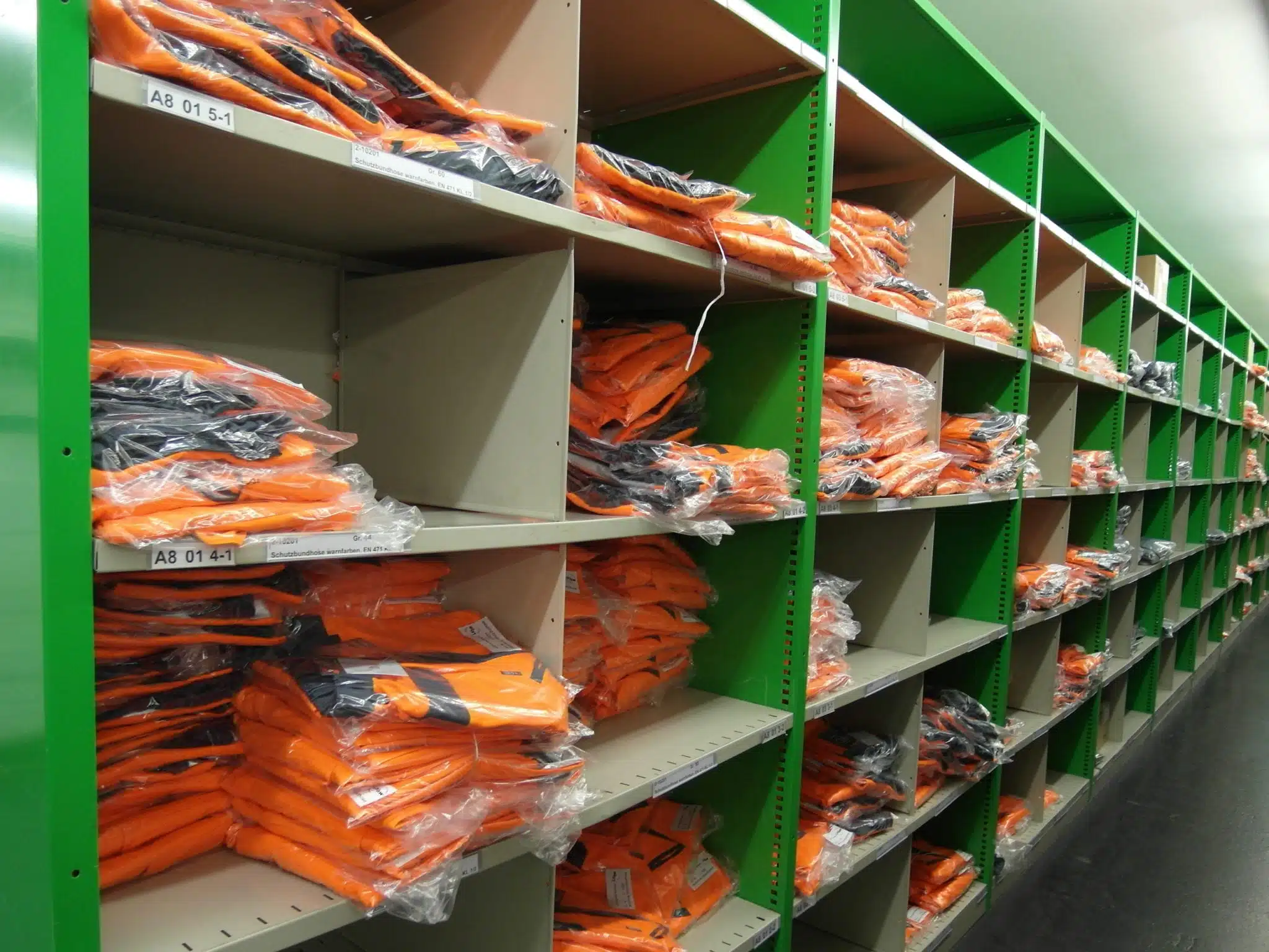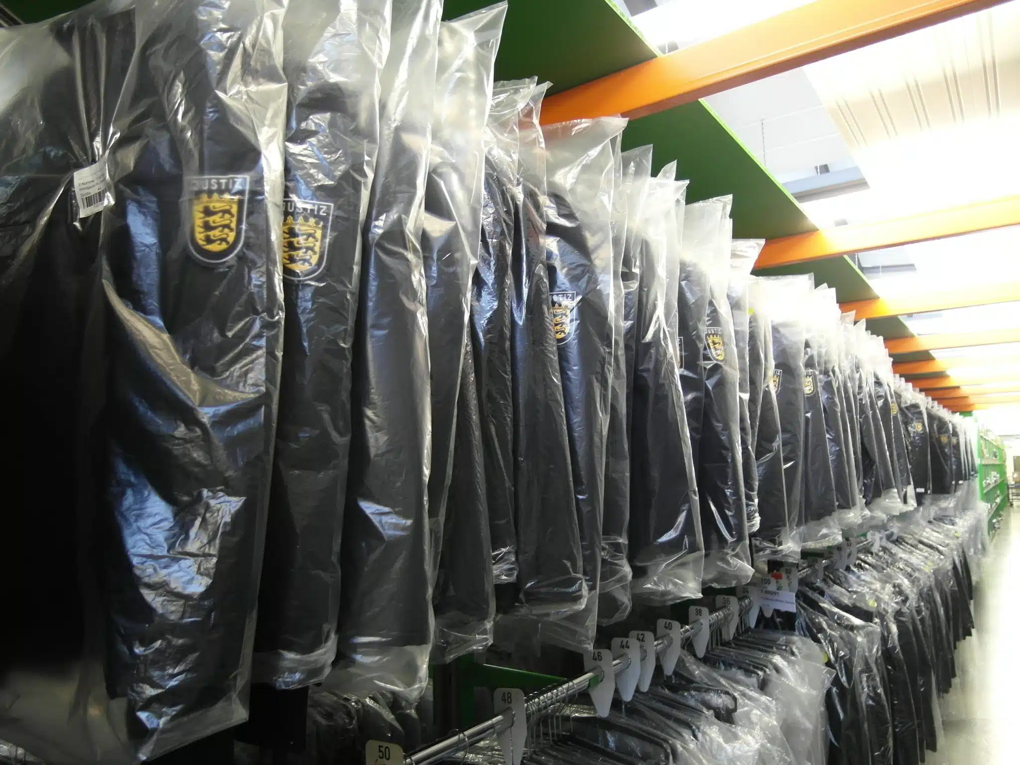 In Ditzingen lagern Sortimente, die Polizei und Justiz aus Baden-Württemberg und Hessen sowie die Straßen- und Gewässerunterhaltung aus Baden-Württemberg für den täglichen Dienst benötigen. Auf circa 4.500 m² Nutzfläche reihen sich Uniformen, funktionelle Sonderkleidung für spezielle Einsätze, Warn- und Schutzkleidung für die individuellen Arbeitsbereiche sowie Ausrüstungsgegenstände – insgesamt 6.000 Einzelartikel bzw. 1.200 Warengruppen. 17 Mitarbeiterinnen und Mitarbeiter sind im Lager für Warenannahme, Bestandsführung, Auftragsbearbeitung, Kommissionierung, Verpackung und Warenausgang zuständig. Sie sorgen dafür, dass die jährlich rund 110.000 Pakete in kürzester Zeit beim richtigen Empfänger sind. „Wir betreuen circa 50.000 Einzelkunden und über 1.000 Dienststellen mit rund 15.000 Bestellberechtigten“, erläutert Christoph Müller, Abteilungsleiter Kundenservice und Vertrieb beim LZBW.