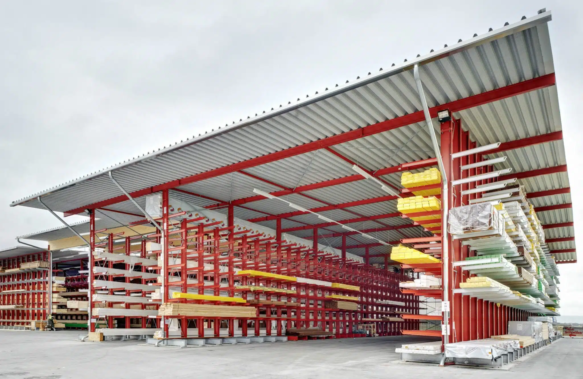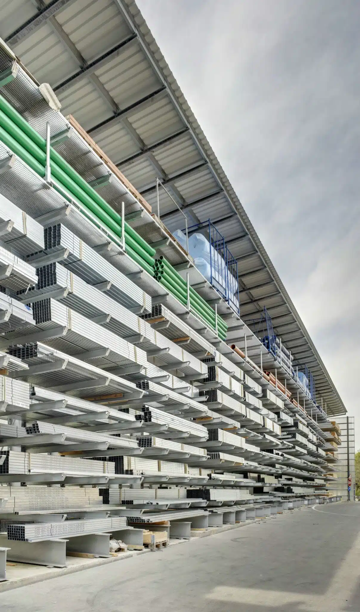 Bei Baustoffhändlern lagern verschiedene Baumaterialien auf Bodenstellplätzen sowie Langgut in Kragarmregalen im Außenbereich. Auch hier muss die Kennzeichnung der Stellplätze witterungsfest und UV-geschützt sein, damit die Barcodes mit der Zeit nicht ausbleichen und fehlerfrei gescannt werden können. Zur Identifikation der Ware auf den Bodenstellplätzen hat ONK die Barcodes auf robuste Schilder aus Aluminiumverbund gedruckt und zusätzlich mit einem UV-Schutzlack überzogen. Die in Kragarmregalen gelagerte Ware ist mit UV-schutzlaminierten Etiketten auf speziellen Etikettenträgern, die am jeweiligen Kragarm mittels Knebelschraube federgelagert angebracht werden, zuverlässig gekennzeichnet.