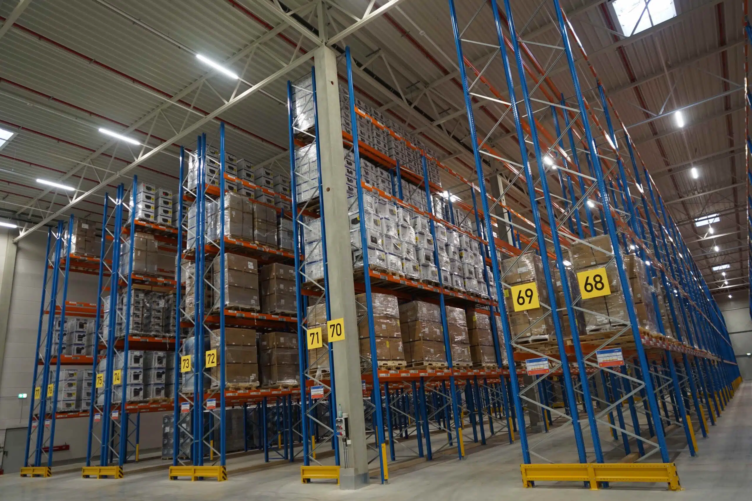Notwendig geworden war die Erweiterung, um die Flächennachfrage seiner stark expandierenden Bestandskunden zu decken. Bei Vollbelegung der dritten Halle bieten 77 jeweils elfeinhalb Meter hohe Regalreihen Platz für 15.000 Paletten. Im ersten Schritt hat TGL die Hälfte der Fläche mit 7.500 Stellplätzen regaliert und nutzt die Restfläche vorerst als Blocklager. Aktuell lagert dort schwerpunktmäßig Hardware eines Internet-Powersellers. Auf Basis der seitens TGL vorgegebenen Lagerplanstruktur hat ONK Regalzeilenschilder und knapp 12.000 Etiketten produziert und montiert. Für die Grundordnung im Lager sorgen Regalzeilen- bzw. Gangschilder, die ONK gut sichtbar an den Stirnseiten der Regale angebracht hat. Die 30 cm großen, auf reflexionsfreier Folie aufgedruckten Ziffern lassen sich schon von Weitem gut lesen und geben einen schnellen Überblick. An allen Regalfächern hat ONK selbstklebende Folienetiketten mit elfstelliger Stellplatznummer, bestehend aus Hallennummer, Regalnummer, -reihe, -ebene sowie -fach, angebracht. Zusätzlich zeigt auf jedem Etikett ein nach unten weisender Richtungspfeil zu Ebene 00 und ein nach oben weisender Pfeil zu allen anderen Ebenen.