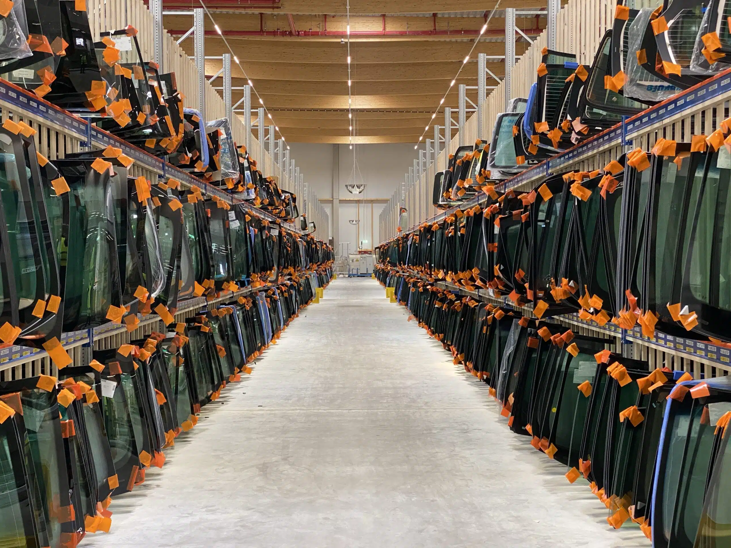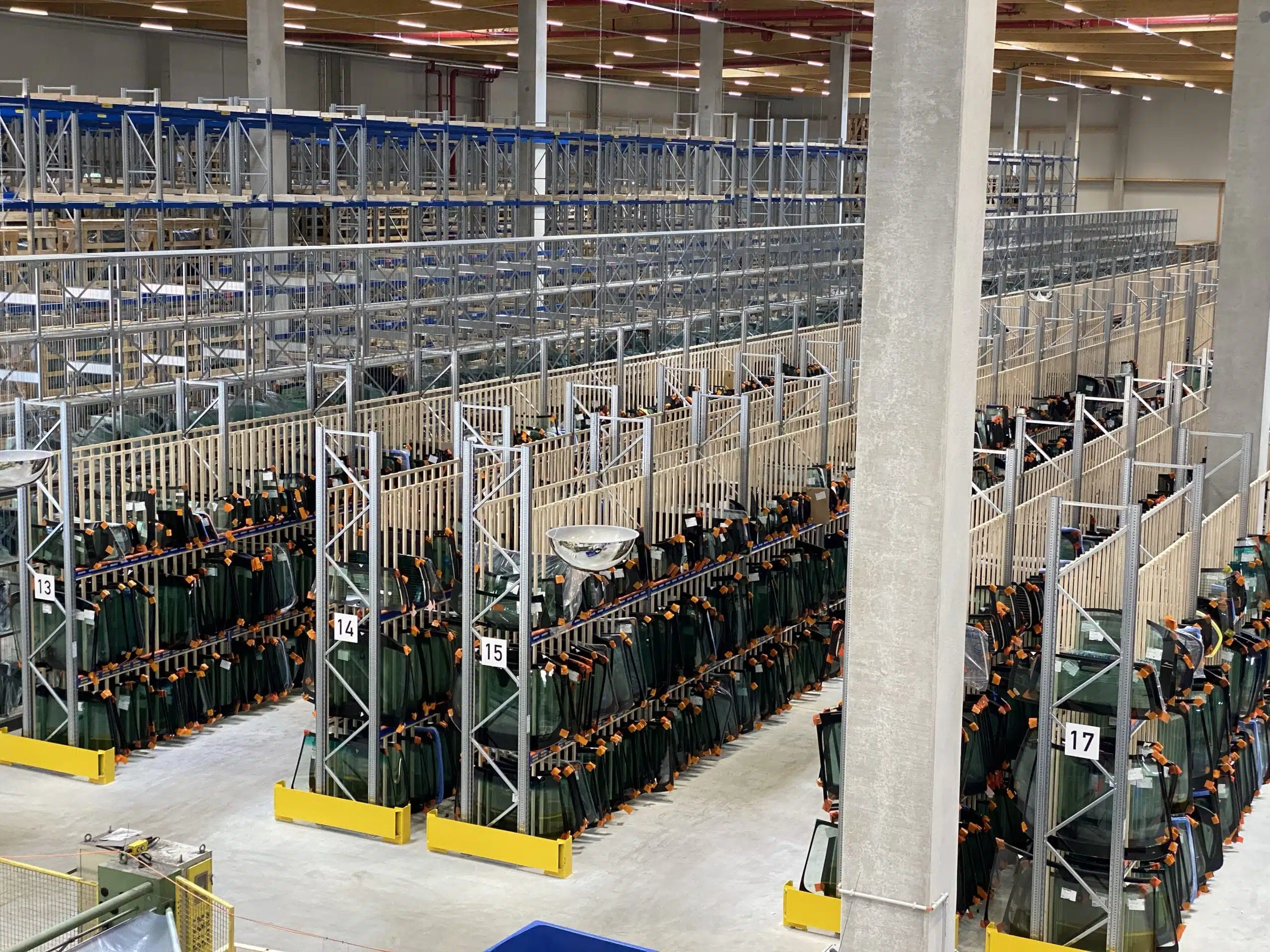 Saint-Gobain Autover vertreibt Fahrzeug-Ersatzverglasung des Tochterunternehmens Saint-Gobain Sekurit, einem der weltweit führenden Automobilglashersteller. Jährlich werden über vier Millionen Glasteile an KfZ-Werkstätten, Autoglaser, Teilehändler und Großbetriebe weltweit ausgeliefert. Die Saint-Gobain Autover Deutschland GmbH operiert seit März 2020 vom neuen Standort in Kerpen aus. Hier lagern auf rund 9.500 Quadratmetern neben Fahrzeugverglasung auch verwandte Produkte wie Klebstoffe, Werkzeuge und Zubehör – 12.000 verschiedene Artikel, insgesamt 24.000 Produkte. „Wir haben 99 Prozent der jemals produzierten Autoscheiben vorrätig“, betont Robert Micus, Projektmanager Logistik bei Saint-Gobain Autover. „Damit sind wir Marktführer, wenn es um Verfügbarkeit geht.“