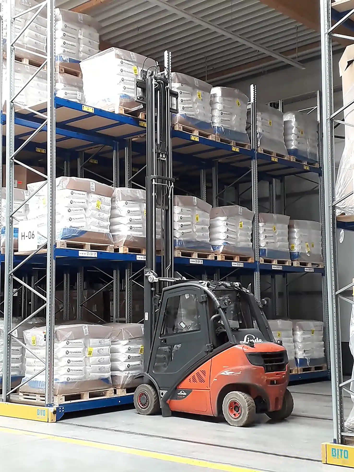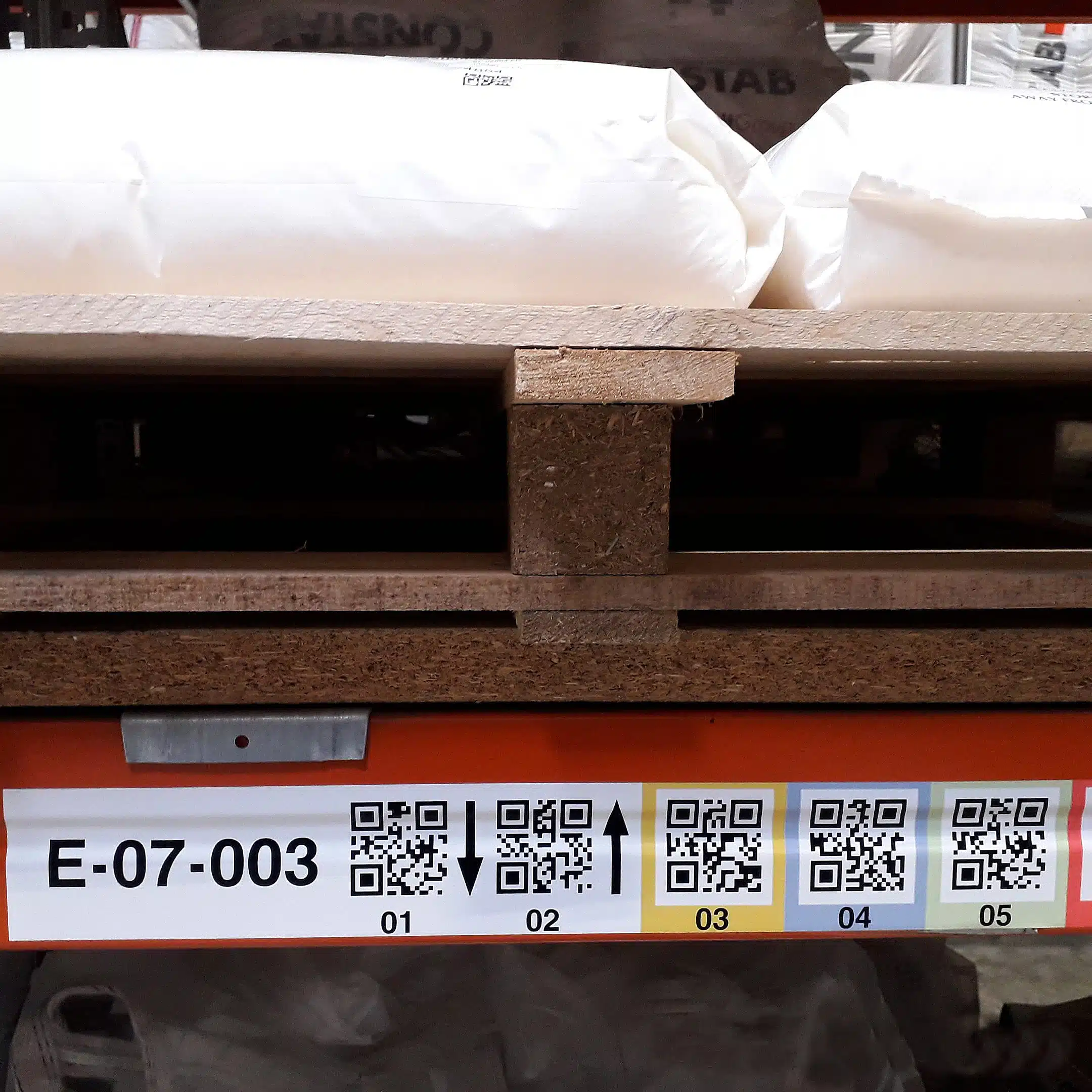 Für die Stellplätze in den Palettenregalen hat ONK mehrfarbige Man-down-Etiketten produziert und an der untersten Traverse angebracht. Auf jedem Etikett sind nebeneinander die Barcodes der darunterliegenden Regalebene sowie aller darüberliegenden Ebenen angeordnet. So können Kommissionierer auch höhere Ebenen bequem vom Boden aus scannen. Damit sie die Barcodes fehlerfrei den dazugehörigen Ebenen zuordnen können, haben die QR-Codes unterschiedliche Hintergrundfarben, z. B. Gelb für Ebene 3 und Hellblau für Ebene 4. „Wir sind mit der Umsetzung durch ONK sehr zufrieden“, betont Mainka. „Der Kontakt war un-kompliziert und die Abwicklung erfolgte im zugesagten Zeitrahmen, sodass wir die Reorganisation wie geplant umsetzen konnten.“