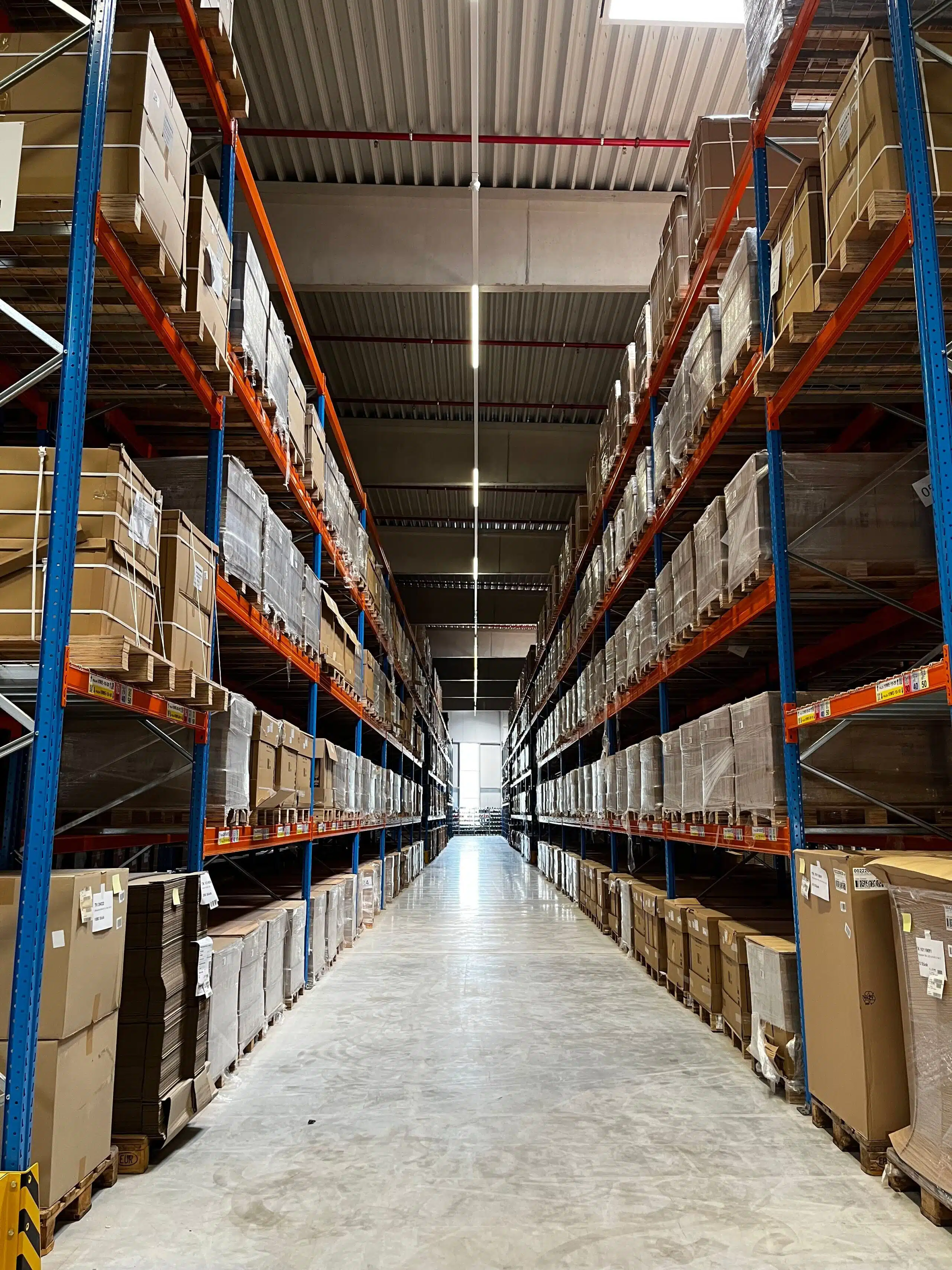 Das neue Logistikzentrum ist mit rund 12.000 qm Lagerfläche drei Mal so groß wie das bisherige Lager in Werl, das es ersetzt. „Um verschiedene Produktwelten mit unterschiedlichen Anforderungen an einem Standort zu bündeln und flexibel auf Kundenwünsche reagieren zu können, besteht es aus drei Hallenmodulen“, erläutert Michael Millentrup, Kaufmännische Leitung Logistik bei A.L.S. „So können wir nun sperrige Güter in Block- und Langgut wie Profile und Lichtstelen in Kragarmregalen optimal lagern.“ Im Hallenbereich 1 stehen 7.000 Palettenstellplätze mit variabler Höhe zur Verfügung, ebenso rund 300 Stellplätze in Fachbodenregalen für Kleinteile. Halle 2 beherbergt ein Thermolager auf rund 1.000 qm mit einer Temperierung zwischen 12 und 18 Grad für die Lagerung z.B. von Kuchen, Nüssen und Pulver. Halle 3 stehen schließlich bietet auf 4.000 qm Blocklagerfläche Platz für nicht regalfähige Güter.