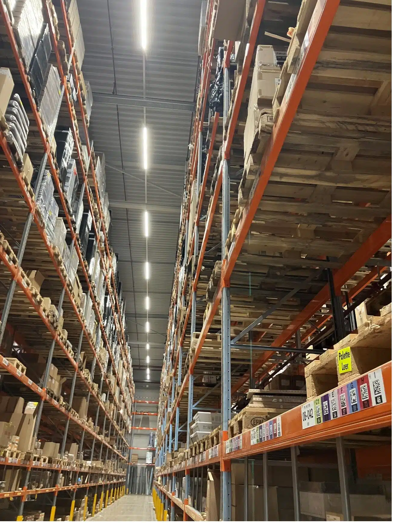 Der Elektrogroßhändler Sonepar hat die Palettenregale in seinem Logistikzentrum Nord-Ost in Garbsen bei laufendem Betrieb neu kennzeichnen lassen. Den Auftrag übernahm der Lagerkennzeichnungsspezialist ONK, der schon die Erstausstattung der Regalbeschilderung ausgeführt hatte. Im Zuge der Einführung eines digitalen Warenwirtschaftssystems (WWS) wurden im Januar 2023 40.000 Palettenplätze im elf Meter hohen Hochregallager mit neuen QR- und farbcodieren Etiketten versehen, um die Voraussetzungen für den Umstieg auf ein neues Warenwirtschaftssystem zu erfüllen.