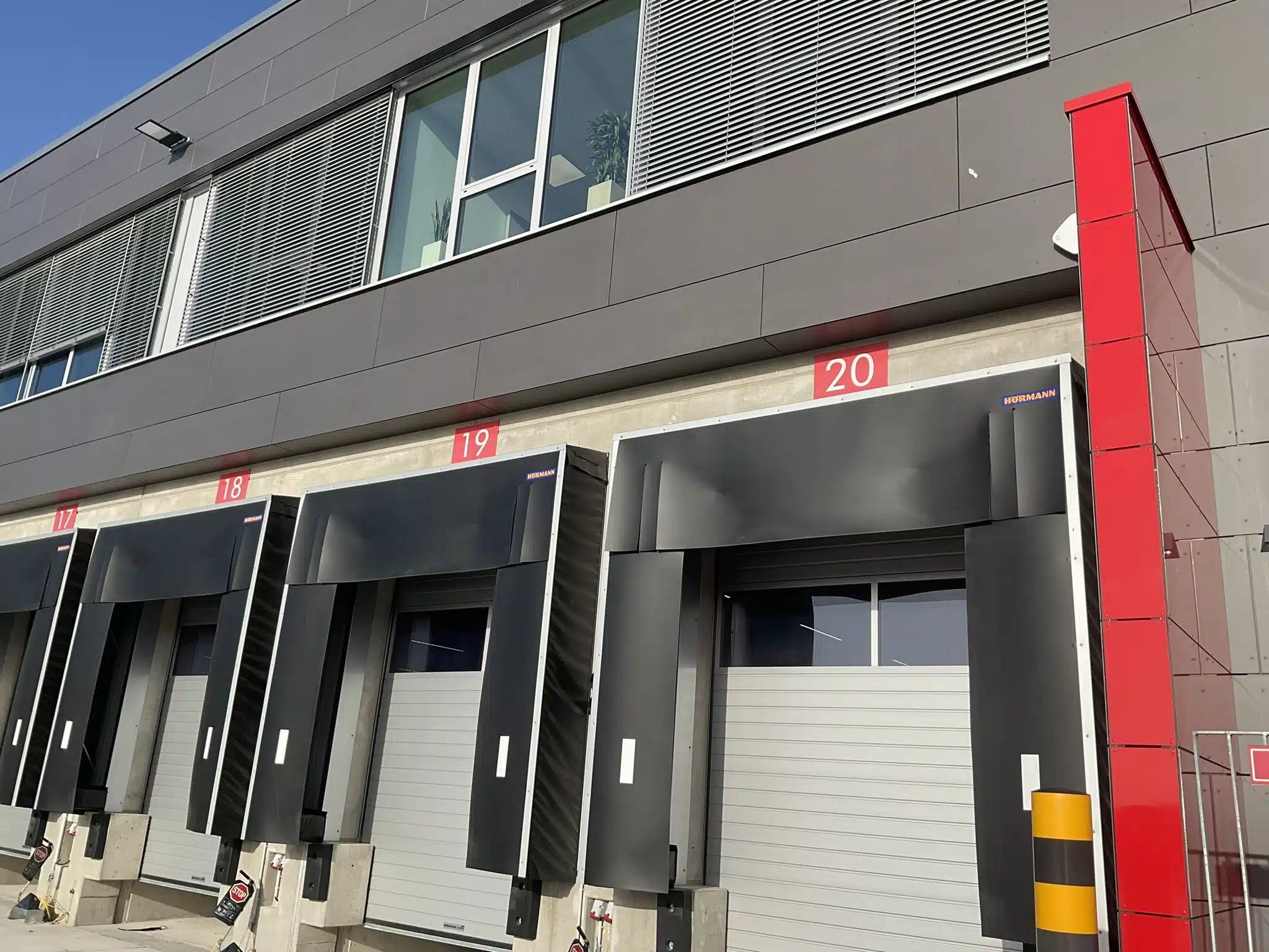 Im Innenbereich sind außerdem Torbeschilderungen aus Hartschaum angebracht, die von 01 bis 30 durchnummeriert sind. Bei den Außenschildern aus einem Aluminiumverbundmaterial mit UV-Schutzlack für Tore und Werkstatt sind die Nummerierungen im roten Farbton der Unternehmensgruppe gehalten.