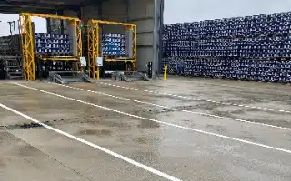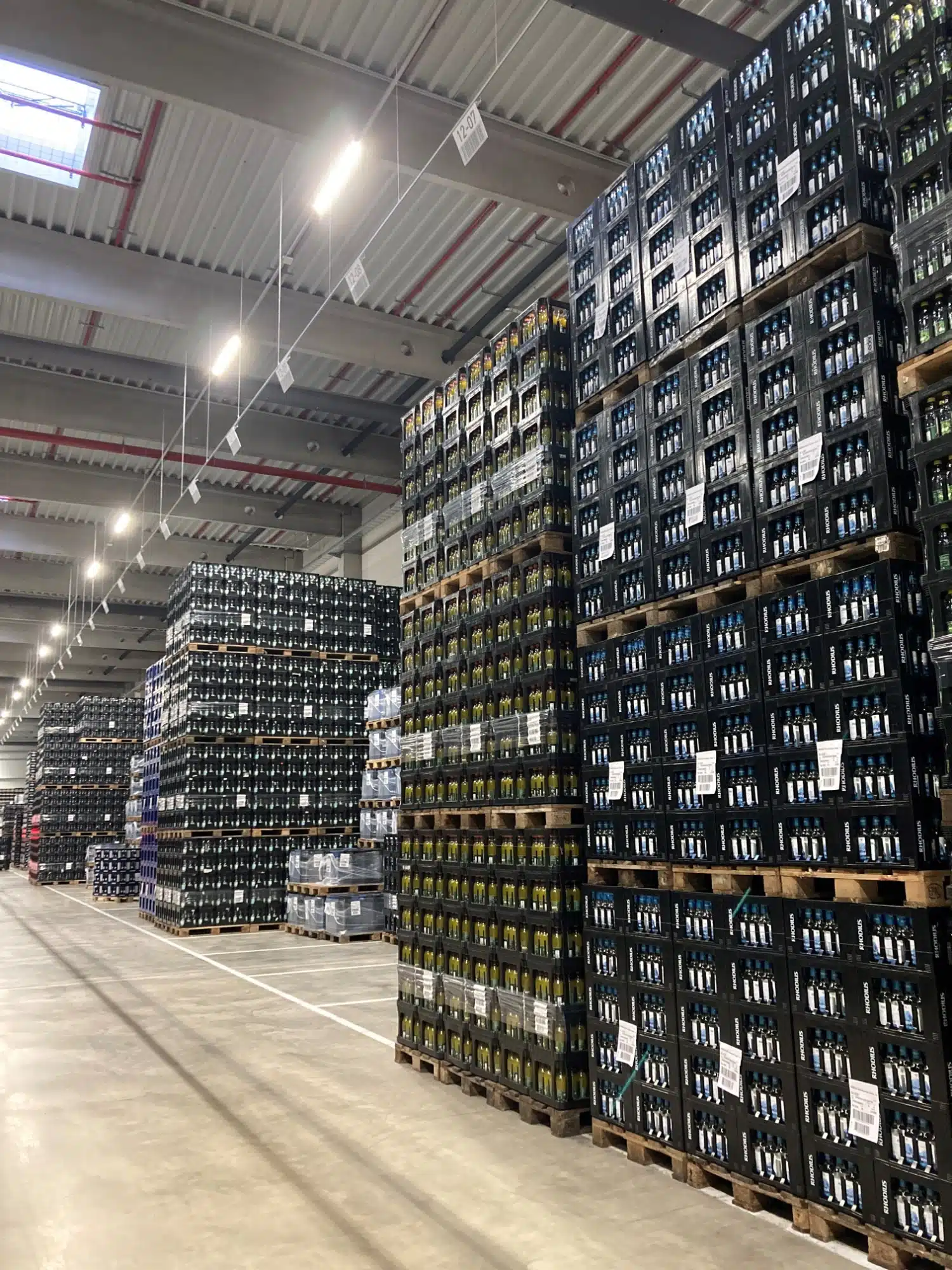 Mit jährlich zwei Millionen Hektolitern abgefüllten Erfrischungsgetränken und Mineralwasser und über 350 Mitarbeitenden ist die RHODIUS Mineralquellen und Getränke GmbH & Co. KG eines der größten mittelständischen Unternehmen in der Vordereifel. Die Investition von nahezu 30 Mio. Euro in das neue Logistikzentrum zählt zu den größten in der gesamten Firmengeschichte des weltweit distribuierenden und in achter Generation geführten Familienunternehmens. Das Lager bietet nicht nur deutlich mehr Lagerkapazitäten, sondern verbessert mit 17 Überladebrücken und drei Ladestellen für die Seitenbeladung die logistischen Abläufe. Der Neubau auf 71.000 m² Grundstücksfläche umfasst 23.500 m² Lager- und Packfläche und mehr als 35.000 Palettenstellplätze. Hier lagern alle Fertigwaren sowie das gesamte Leergut, welches für die Mehrwegproduktion benötigt wird. Das Leergut wird bedarfsgerecht mit Speedloadern in den Produktionsstandort gefahren. „Mit dem neuen Lager können alle Logistikprozesse effizient in direkter Nähe zur Autobahn gebündelt werden, während der Produktionsstandort in Burgbrohl weiter optimiert wird“, erläutert Aaron Spindler, Leiter operative Logistik. Bis dahin hatte RHODIUS einen Großteil der Fertigwaren in ein eigenes Lager und zwei externe Lager in umliegenden Ortschaften ausgelagert. Dies bedeutete einen hohen logistischen Aufwand, der zudem mit einem zusätzlichen Verkehrsaufkommen in der Region verbunden war.