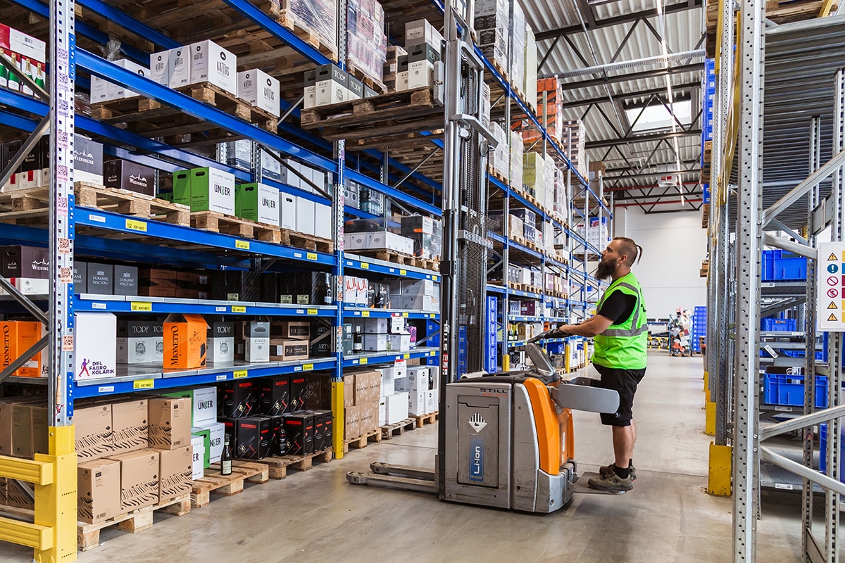 Pro Tag werden rund 200 Tonnen Ware im Logistikzentrum in Wien bewegt. Von dort aus beliefert der Getränkegroßhändler Gastronomie, Hotellerie, Handel sowie Unternehmen. Für die effiziente Bewirtschaftung des Vollsortiments von mehr als 8.000 Getränken werden das automatische Kleinteilelager, Hochregal- und Blocklager in Verbindung mit manuellen Bereichen genutzt. Besonders hervorzuheben ist das vollautomatische Kleinteilelager (AKL) mit 26.600 Kistenlagerplätzen, in dem hochwertige Spirituosen und Weine sicher und platzsparend gelagert werden. Die automatisierte Ein- und Auslagerung sorgt für ein hohes Maß an Wirtschaftlichkeit, Sicherheit und Präzision.