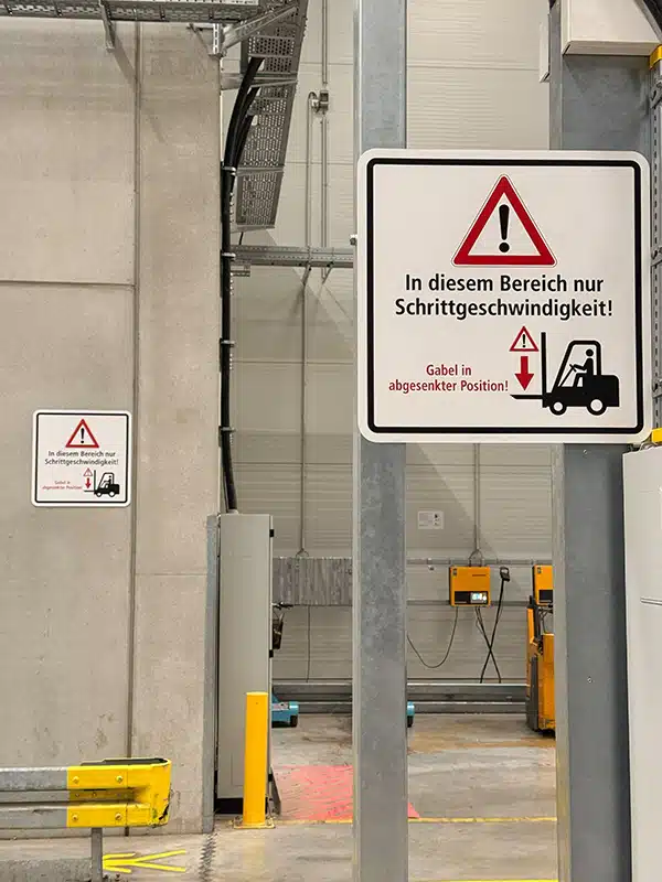 Für die Erweiterung 2025 haben wir erneut Etiketten, Schilder und Bodenmarkierungen produziert und teilweise montiert.