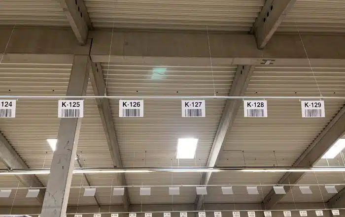Wie schon 2020 hat auch jetzt wieder ONK die Blocklagerplätze beim Maschinenhersteller und -händler Scheppach mit „schwebenden“ Schildern und die Regalplätze mit verstärkten, aus PVC zugeschnittenen Etiketten gekennzeichnet.