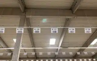 Wie schon 2020 hat auch jetzt wieder ONK die Blocklagerplätze beim Maschinenhersteller und -händler Scheppach mit „schwebenden“ Schildern und die Regalplätze mit verstärkten, aus PVC zugeschnittenen Etiketten gekennzeichnet.